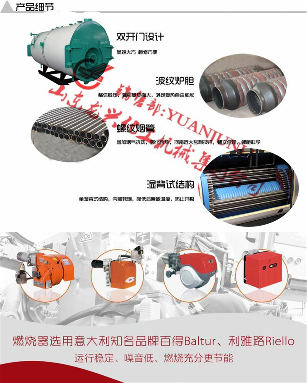 山東龍興集團是一家導熱油熱載體及熱水、蒸汽加熱鍋爐設備的大型集團化生產企業,三十年來我公司致力于系列燃油、燃氣有機熱載體爐/導熱油爐,電加熱導熱油爐,燃油燃氣蒸汽鍋爐,燃油燃氣熱水鍋爐及蒸汽發生器,余熱換熱等設備的開發設計與制造。集團銷售部長原君禮現真誠為您推薦0.5-30噸系列燃油燃氣蒸汽鍋爐,歡迎您致電和微信(手機同號)咨詢!!