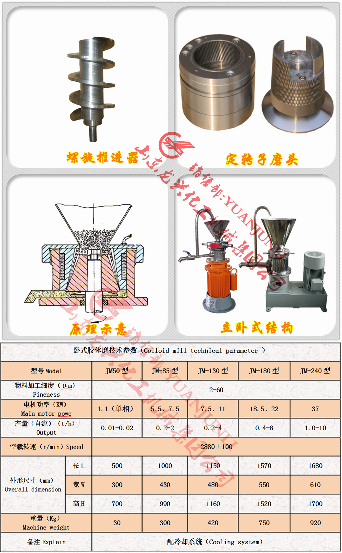 膠體磨機是濕式超微粒加工的第二代新型設(shè)備,適用于各類乳狀液的均質(zhì)、乳化、分散、混合、粉碎、研磨。廣泛應用在食品(果漿、果汁、蛋白奶、豆奶、奶茶、乳制品,飲料等)、制藥(各型糖漿、營養(yǎng)液、中成藥、膏狀藥劑等)、日用化工(牙膏、化妝品、洗滌劑等)、化工(顏料、染料、涂料、潤滑油、石油催化劑等)、乳化瀝青、煤炭浮選劑、陶瓷軸料、納米材料等行業(yè)。