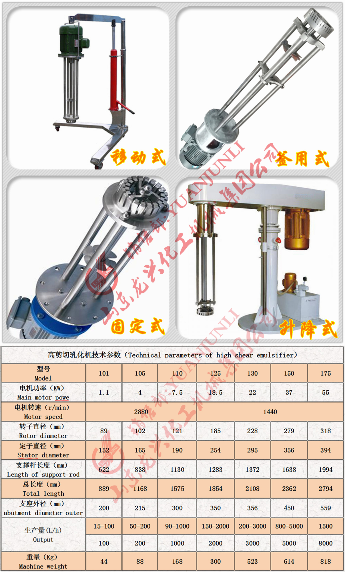 山東萊州高剪切分散乳化機根據應用工況可分為移動式高剪切分散乳化機以及升降式高剪切分散乳化機和固定式高剪切分散乳,龍興集團為您供101-150型系列移動式高剪切分散乳化機。